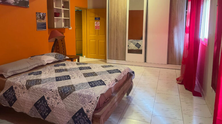 Nos chambres à Mtsapéré disposent chacune de ses sanitaires. Nous disposons de 3 chambres standards et d’une suite parentale. Il s’agit d’un appartement type T5 avec un grand salon commun et une cuisine commune. L’appartement dispose de 2 terrasses. Il se trouve à 10 min en voiture de la barge, 5 minutes du CHM, 5 minutes du centre commercial Baobab.